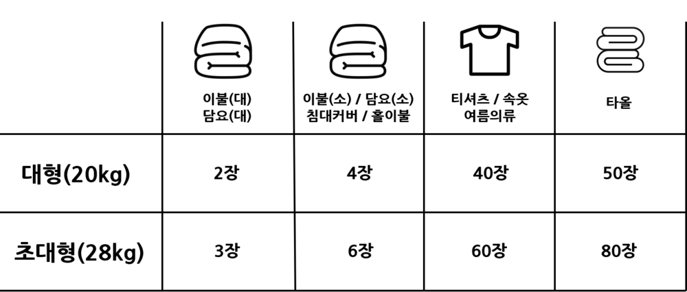 * 세탁용량은 세탁물의 재질과 부피에 따라 다를 수 있습니다.